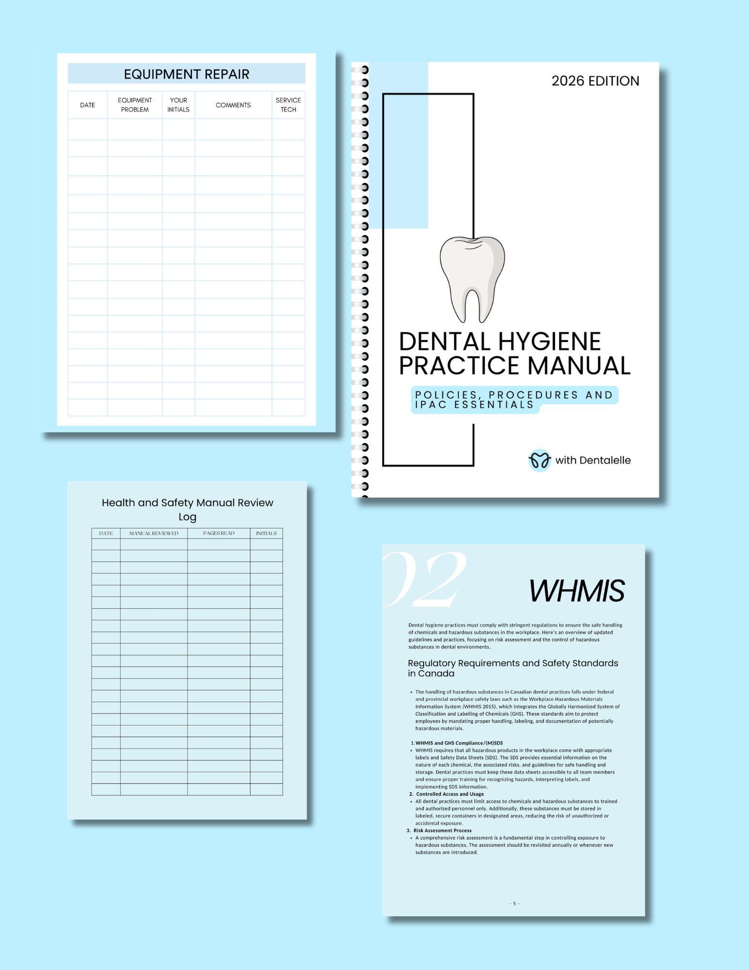 This package includes 12 page control log templates, 25 page log descriptions for each template, a 122 page health and safety manual with IPAC, and step-by-step procedures mobile dental hygiene manual, printable documents, instructional videos, and more!