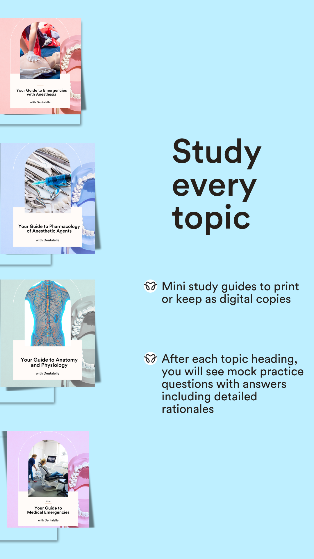 Study topics on anesthetics overview, specific agents (lidocaine, bupivacaine), vasoconstrictors, doses and clinical effects, nitrous oxide, injection types, armamentarium, assessing patient history, common complications, bls, bones of the skull, pain pathways, pharmacology, and more!