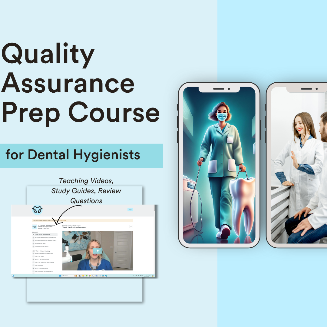 This course is for Dental Hygienist's taking the Quality Assurance Exam. This prep course is designed and prepared for you by a fellow dental hygienist.