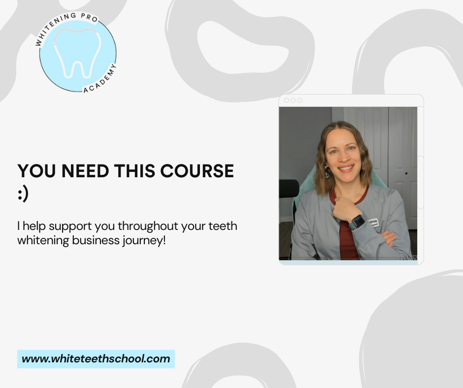 AND so much more! All about how to run a successful teeth whitening business and how to bring in new clients consistently!